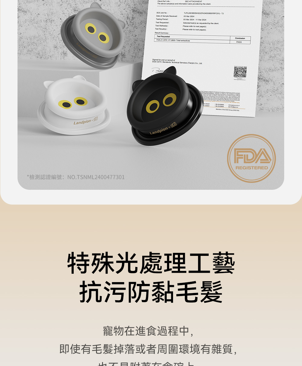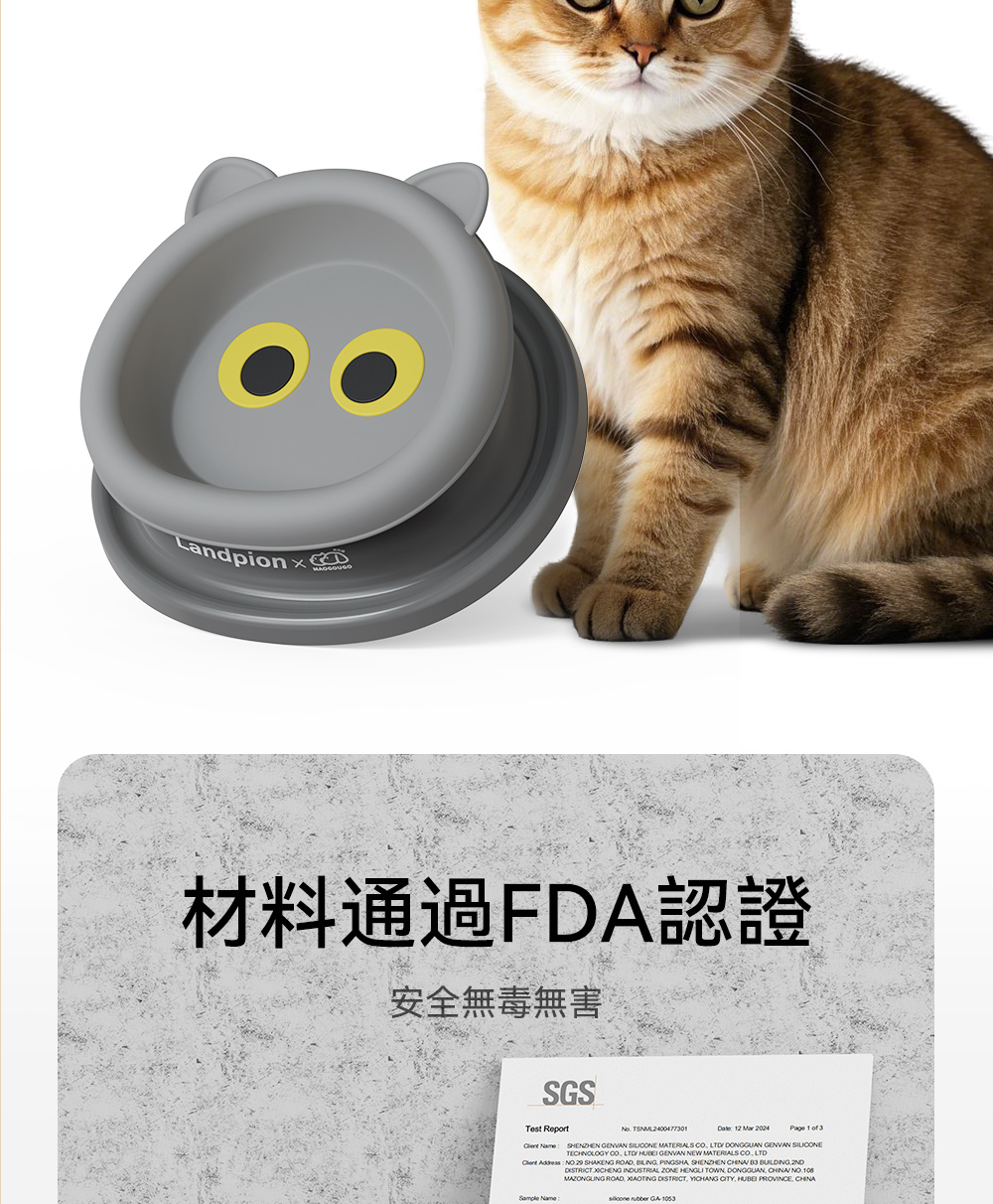 【大眼喵喵碗】採用食品級矽膠材質,通過FDA認證,安全無毒無害,讓毛孩的每一餐都安心無憂。