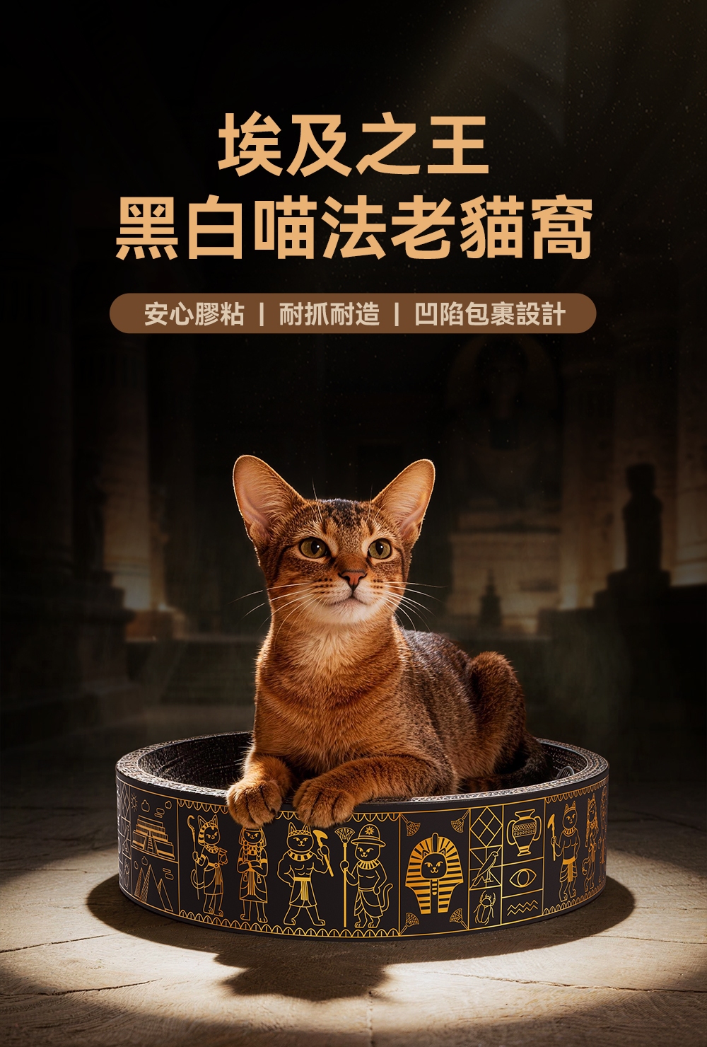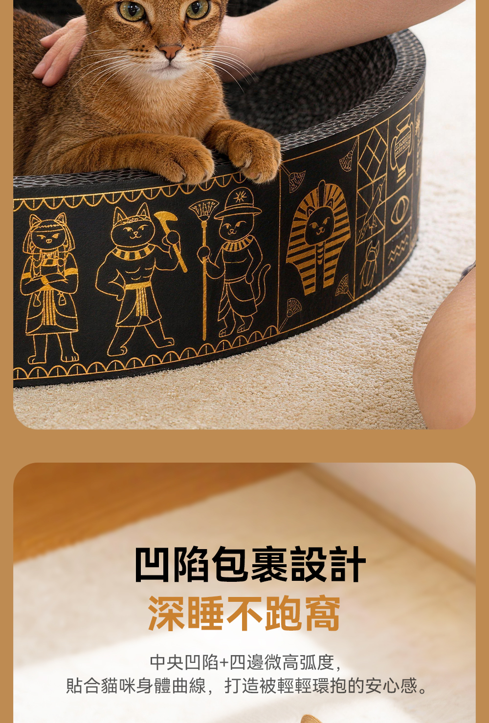以埃及象徵圖騰為靈感,融合現代極簡線條,打造既是貓窩、也是空間裝飾的高質感作品。