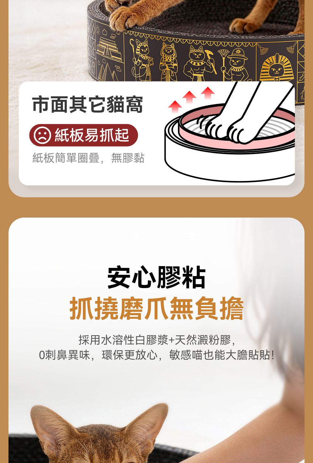 紋理緊密、耐磨耐抓,滿足磨爪與睡眠雙重需求• 環保紙漿原料