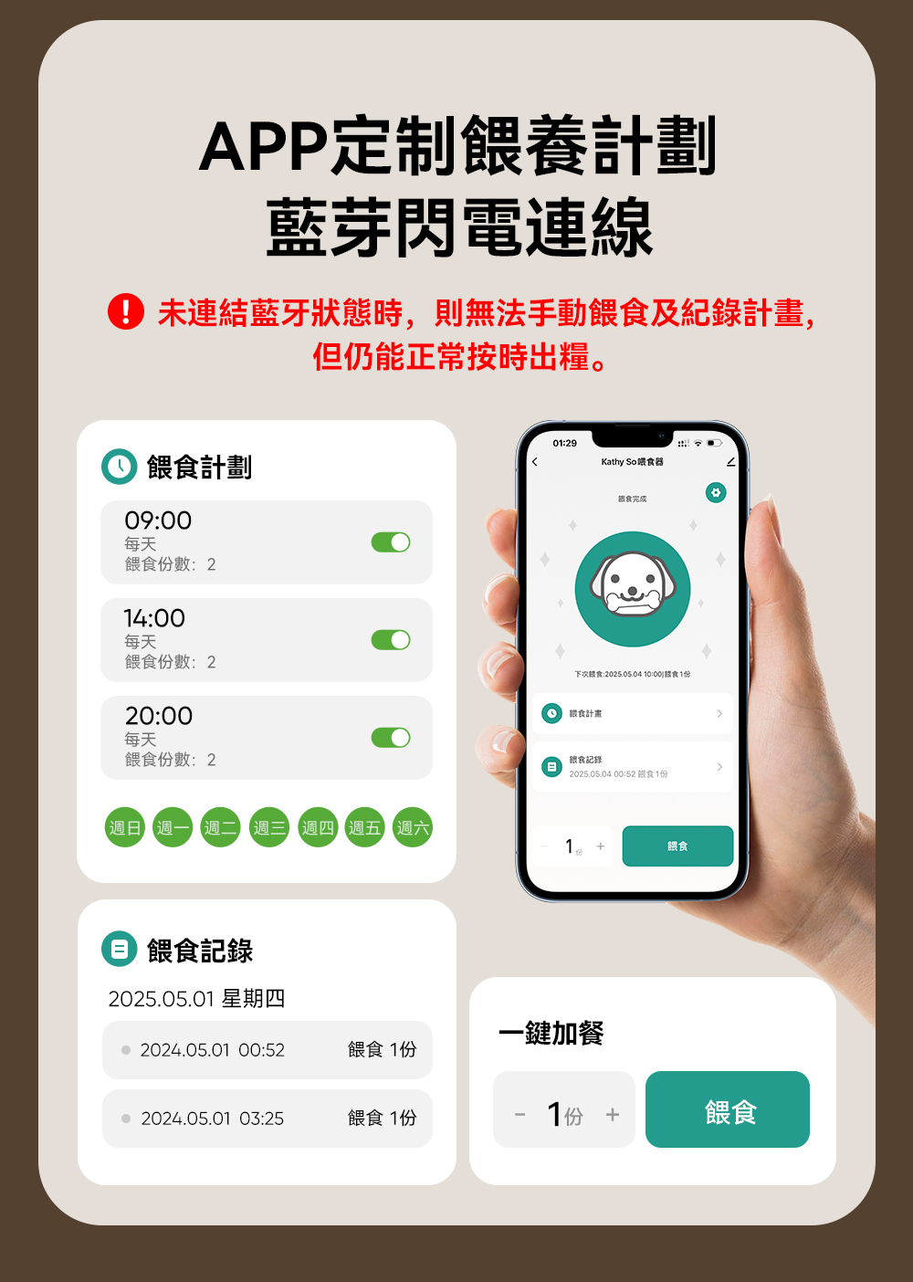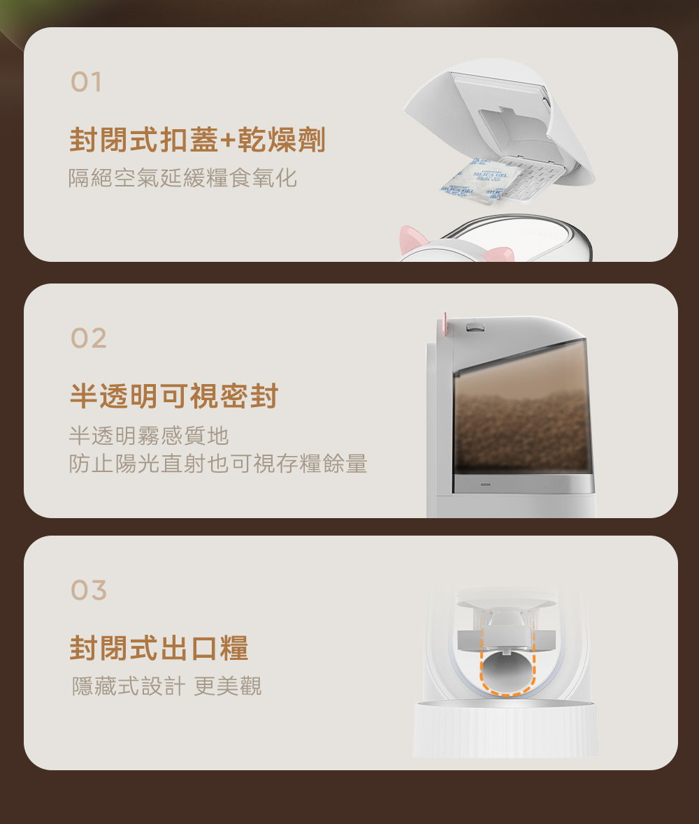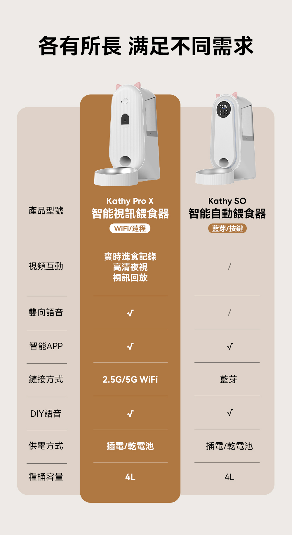 Kathy SO 智能自動餵食器,在外地也能隨時掌握毛孩的狀況,給予貼心陪伴。讓每一餐都準時精準,守護毛孩的健康不間斷。無論大顆乾糧還是凍乾食品,都能順暢投餵不卡糧,是現代飼主的智慧育寵好幫手!