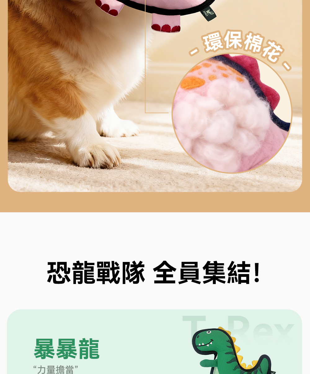 可愛狗狗玩具以恐龍主題設計,結合柔軟親膚與耐咬材質,陪伴毛孩安全又盡情地玩耍。適合啃咬、拋接與互動遊戲,幫助釋放精力、減少破壞行為。可愛造型為他的每一天增添快樂時光。