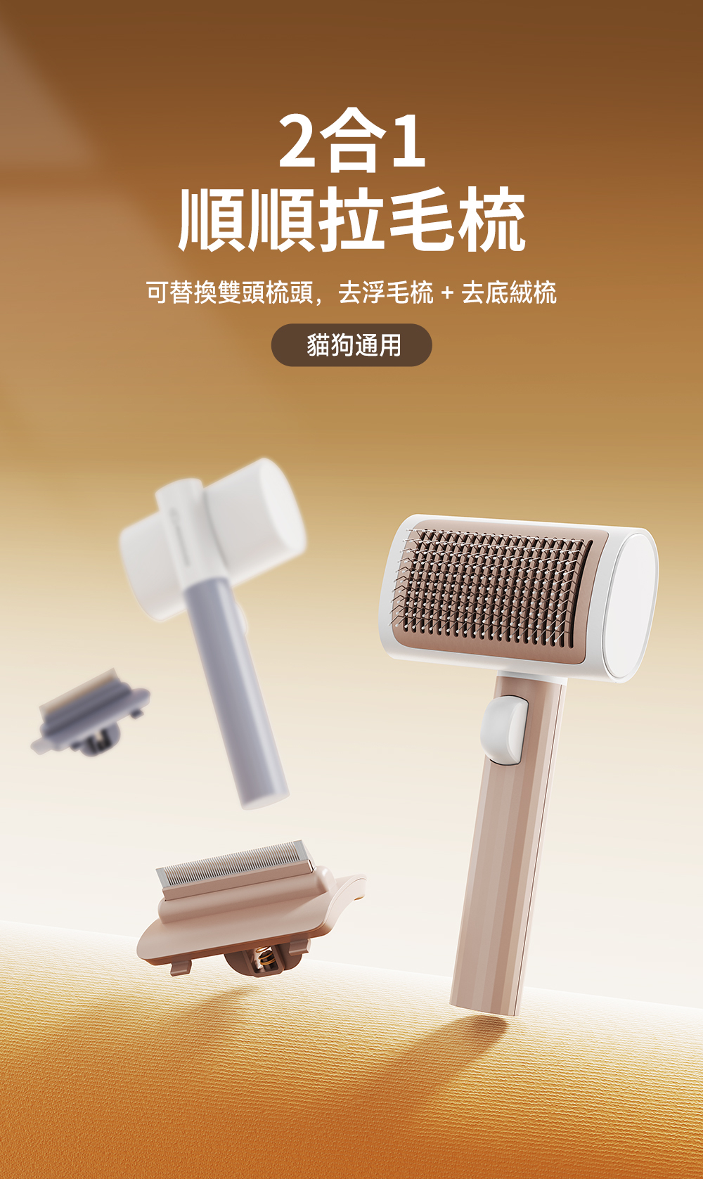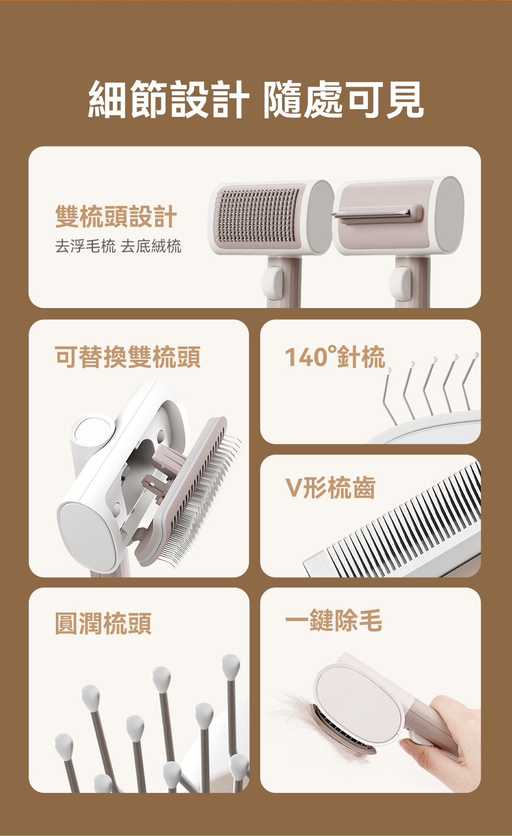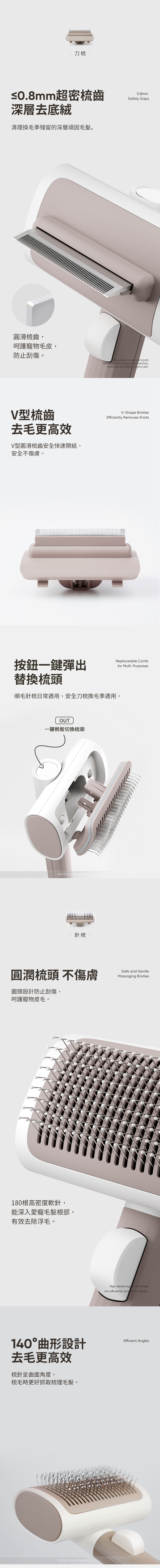 ・可替換雙梳齒設計,讓您輕鬆應對不同的寵物毛髮需求,而且買一年握柄保固。