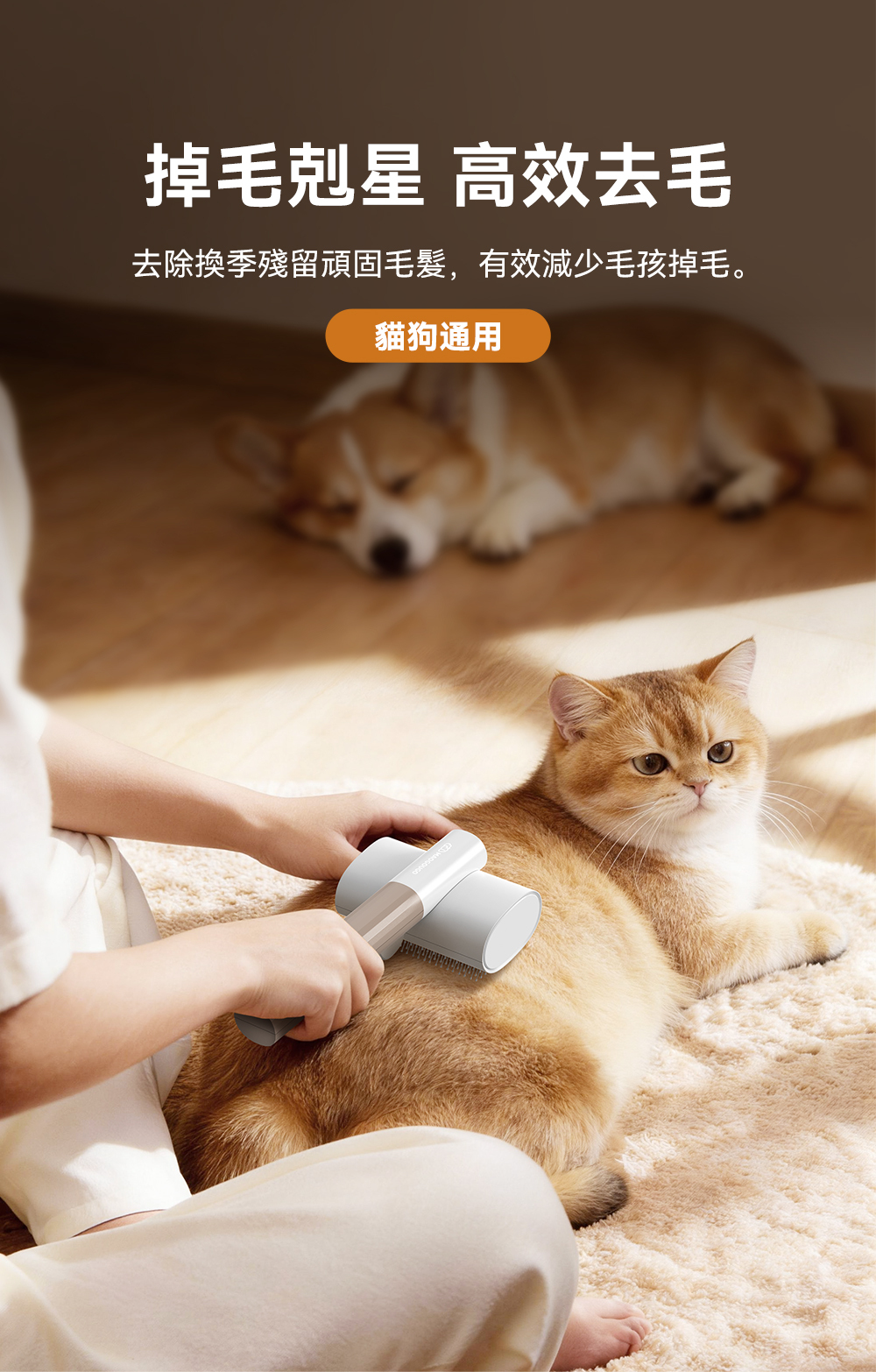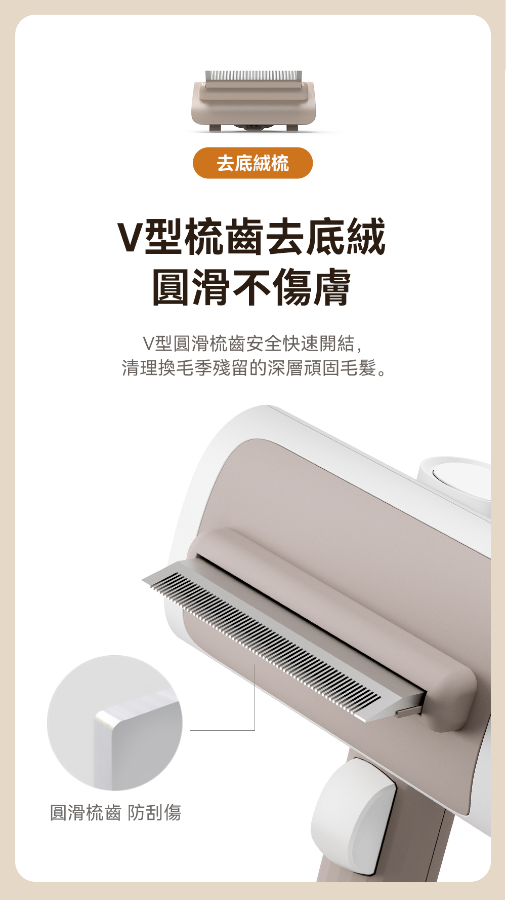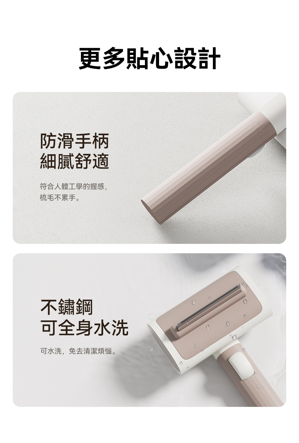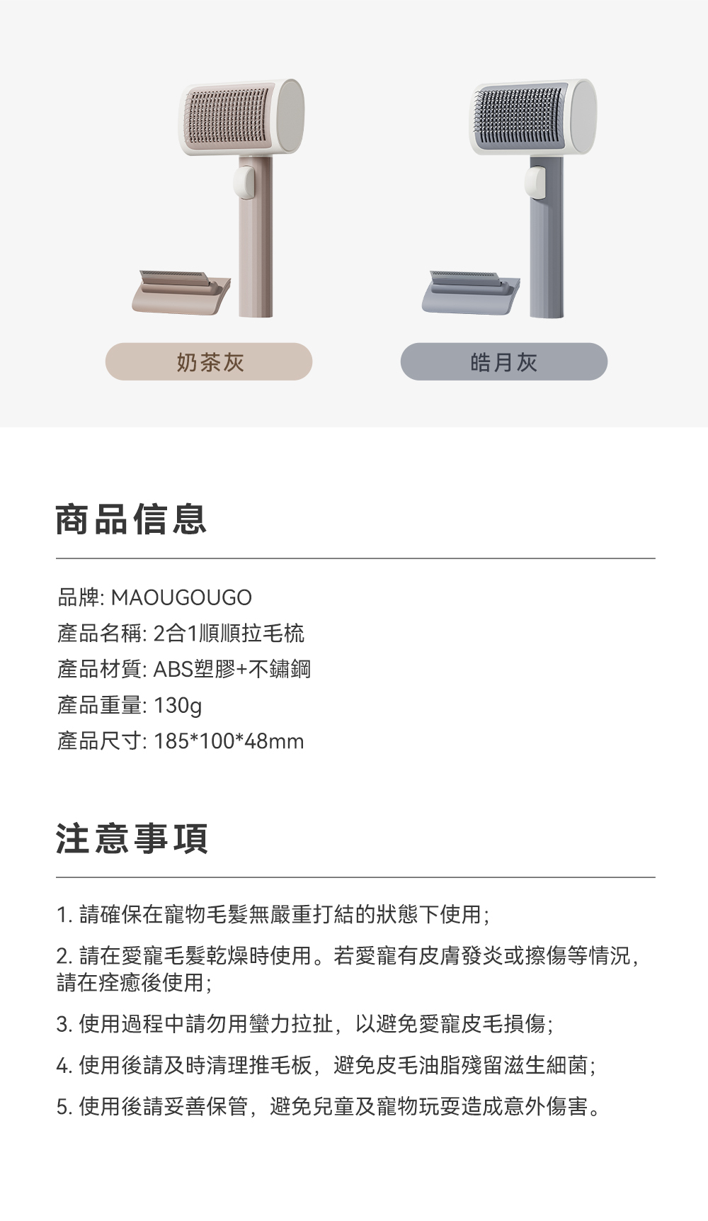 ・可替換雙梳齒設計,讓您輕鬆應對不同的寵物毛髮需求,而且買一年握柄保固。