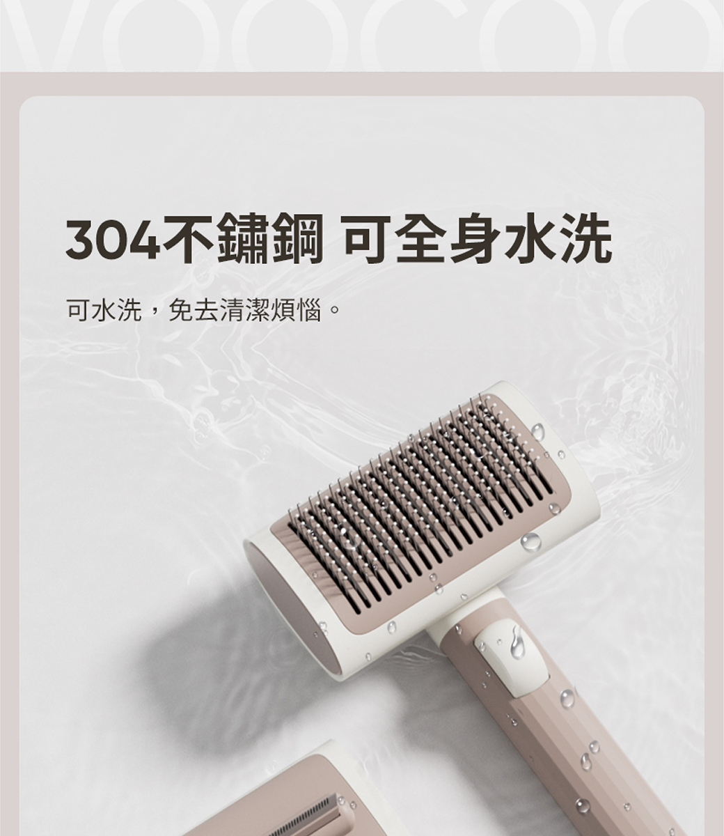 ・刷頭採用電鍍304不銹鋼圓滑梳齒,溫和且不傷害寵物皮膚。