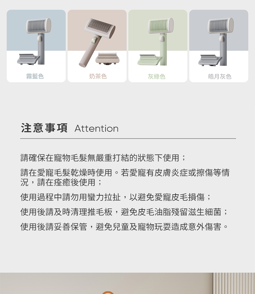 ・一鍵替換梳齒,輕鬆方便;一鍵清除毛髮,簡單快捷。