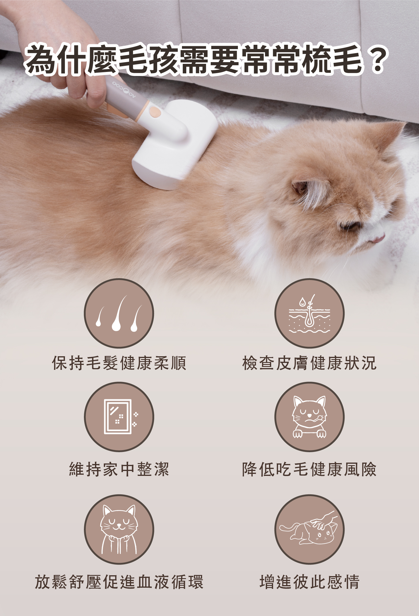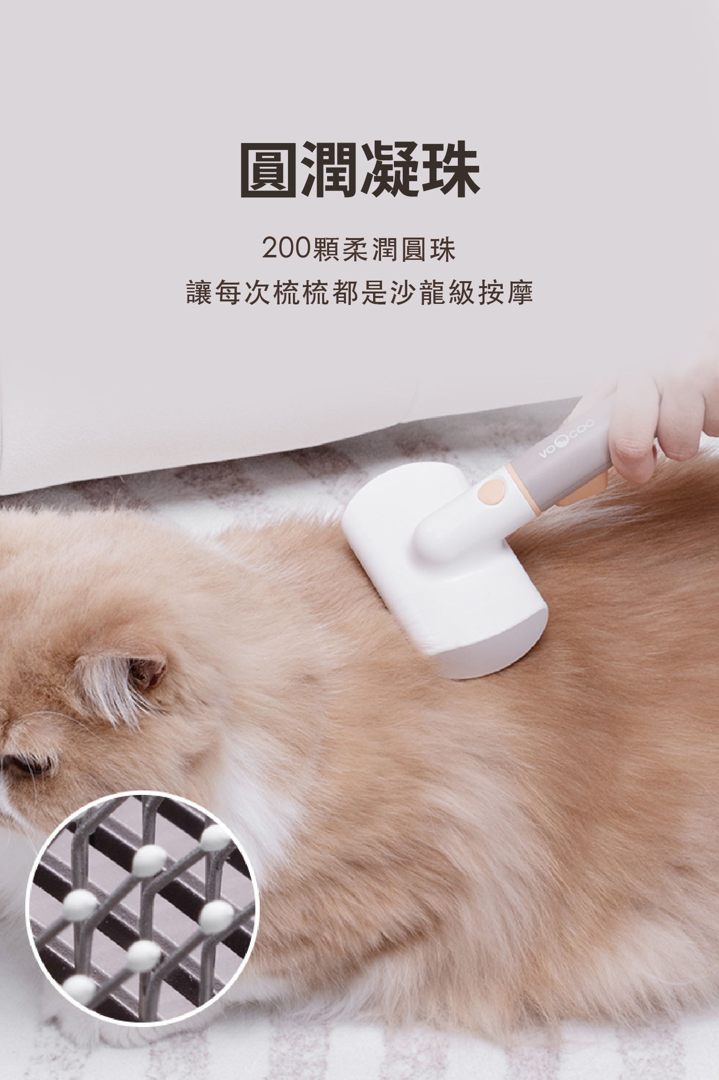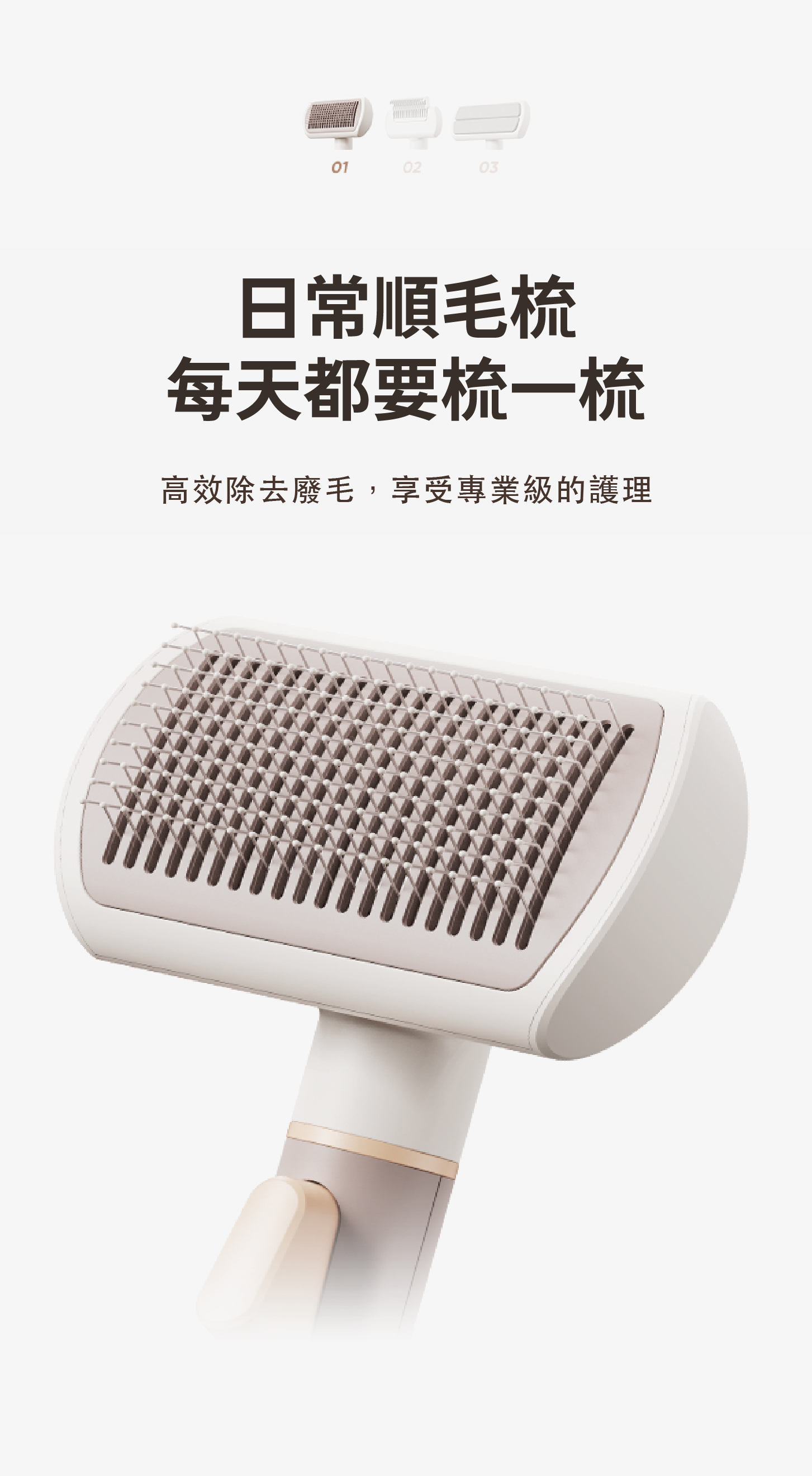 ・刷頭採用電鍍304不銹鋼圓滑梳齒,溫和且不傷害寵物皮膚。