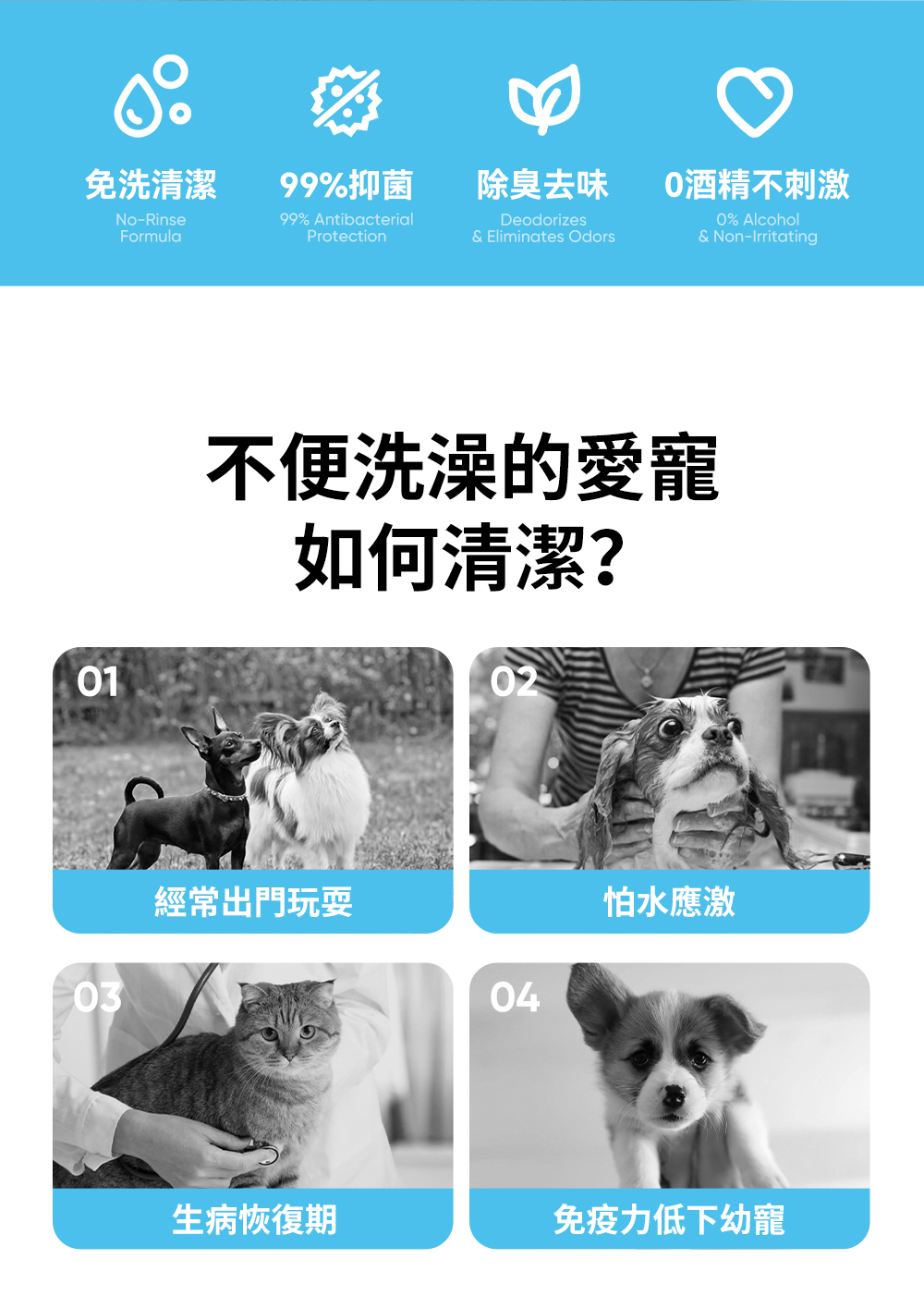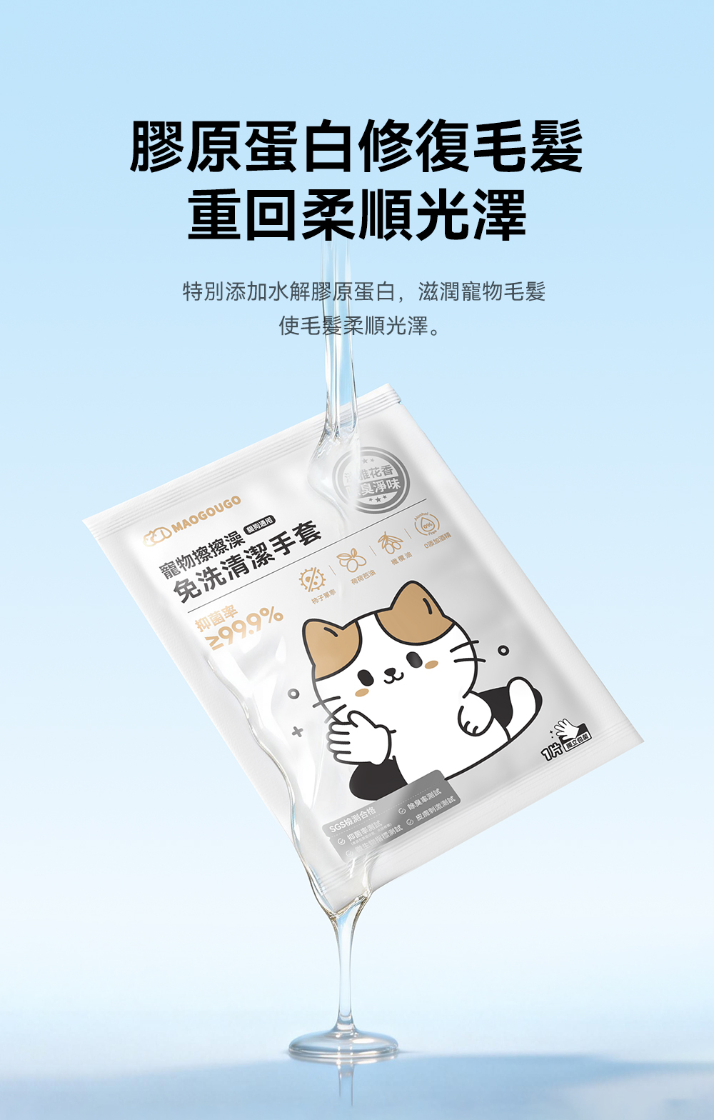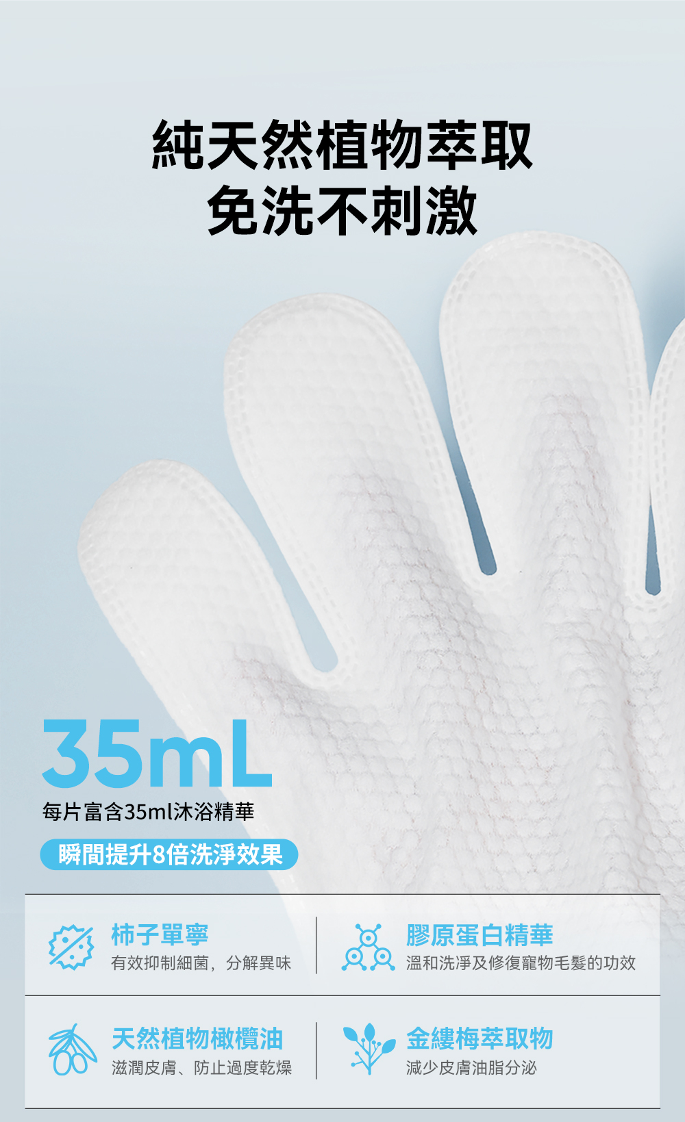 ・每片富含35ML沐浴精華,提升8倍潔淨效果,深層清潔寵物毛髮。
