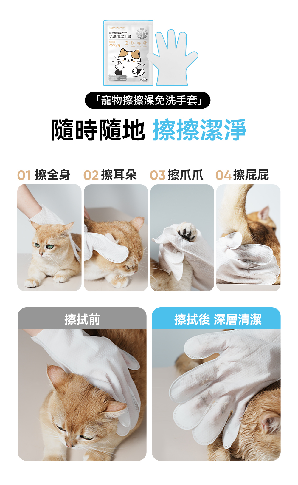 ・單片包裝,方便攜帶外出旅行,不怕用不完,隨時保持寵物清爽。
