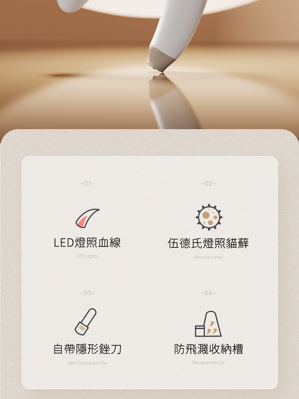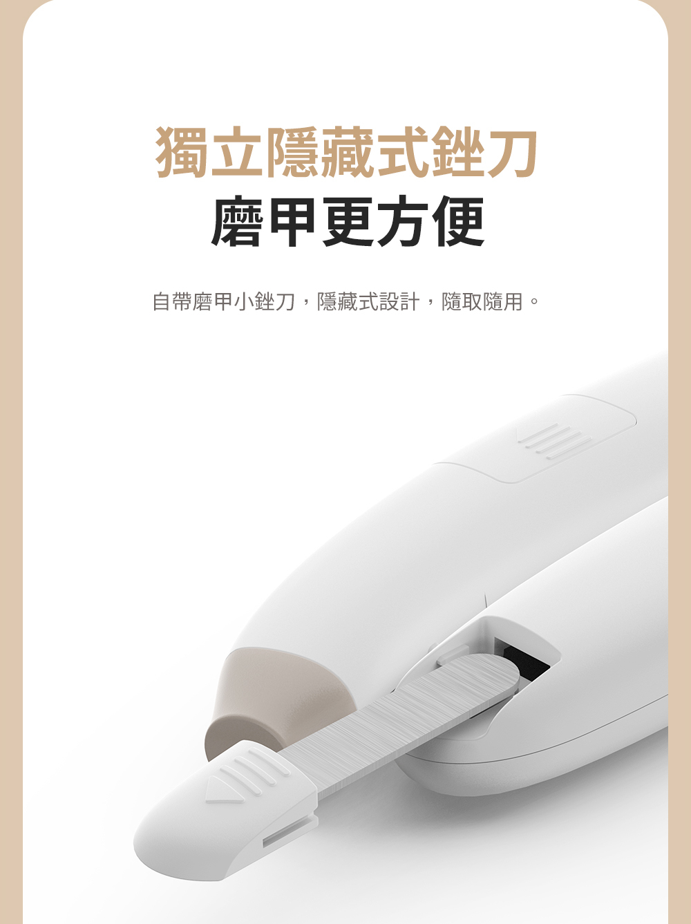 指甲銼:方便存放在手柄內,可用於拋光指甲。